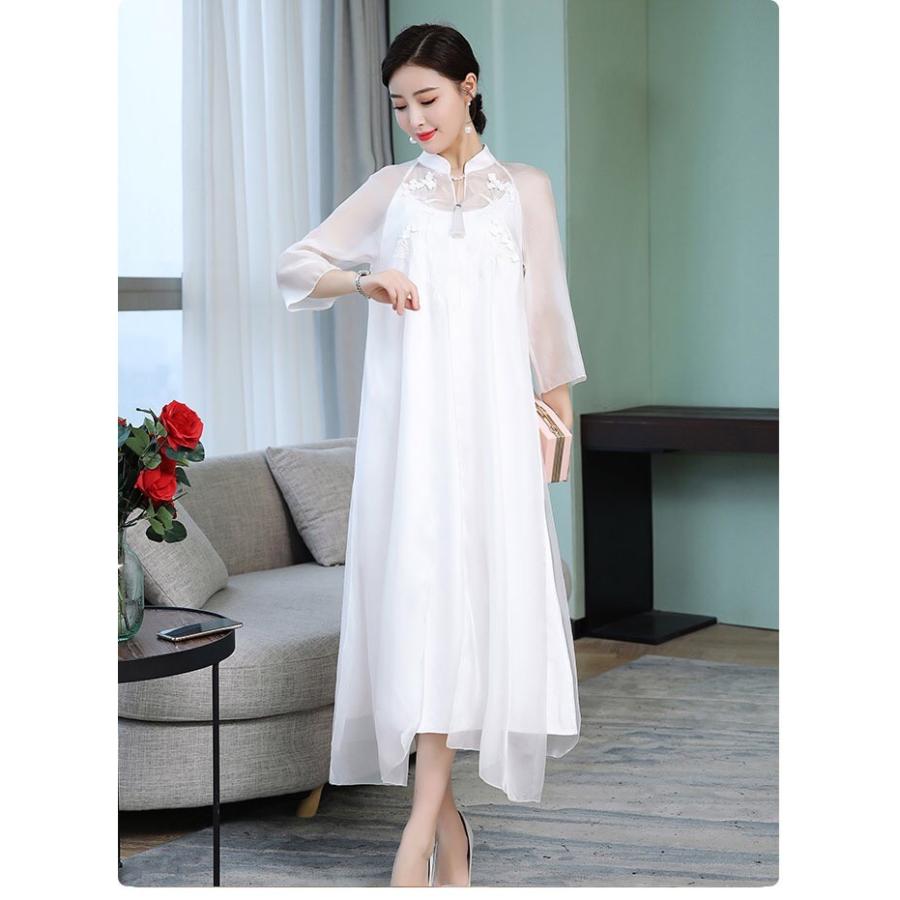 白ワンピース チャイナドレス ワンピ Aライン マキシ チャイナドレス レディースワンピース 漢服 ロング丈 長袖 刺繍 中国風 ナチュラル 体型カバー B596 The Best One 通販 Yahoo ショッピング
